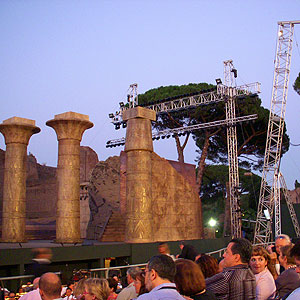 로마의 여름 풍물이라고 하면 그 하나가 카라칼라 목욕탕에서 행해지는 야외 오페라이다. 관광지 콜로세오와 치르코막시모의 근처에 있는 고대 로마 시대의 공중 목욕탕 유적안에 무대를 만들어 훌륭한 기술의 무대 장치와 무대 조명으로 물들여지는 야외오페라.