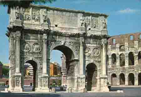 콜로세오는 압피아 가도로부터 포로 로마노에 입구에 있는 콘스탄티누스의 개선문을 지나면 그 거대한 용모가 펼쳐진다.