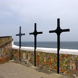 푸른 바다에 둘러쌓인 경치도 멋지지만 스타일이 뒤섞인 특징적인 건물의 매력도 이 교회를 유명하게 하고 있다.