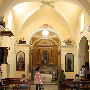 교회의 내부는 작으면서 흥미롭고 아치와 천정이 아름답다. 목제의 의자가 몇개 놓여져 있고 지금도 미사에 사용되고 있다는걸 알수 있다. 파도바의 성안토니오의 상이나 십자가의 그리스도책 형상등이 모셔져 있다. 이민자나 어부들에게 있어서 중요하게 취급되었던 교회였던 것 이외에도 폭풍우때 등은 기원을 하러오는 교회였다고 한다.